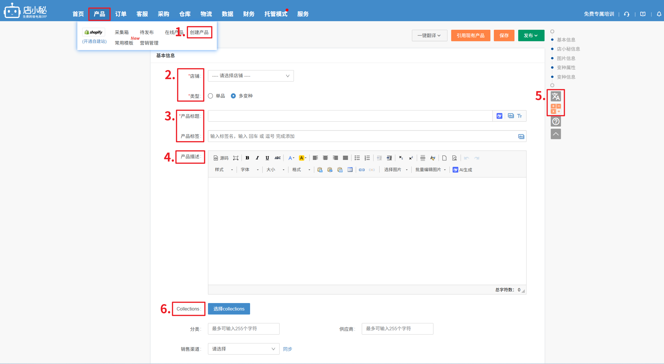 ⑤引用现有产品:直接引用之前刊登的产品的产品信息,修改后快速发布