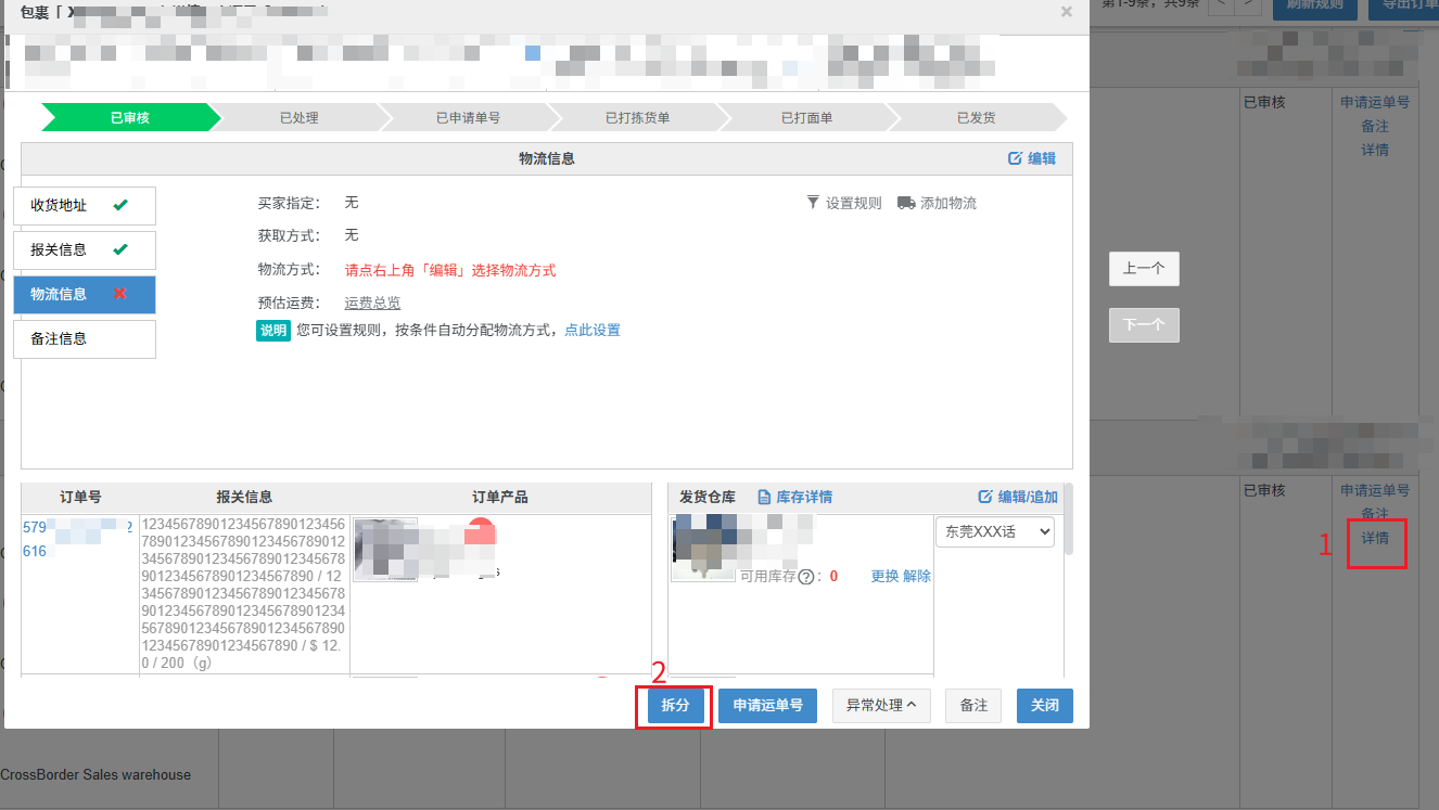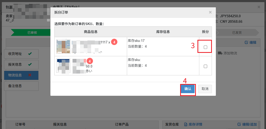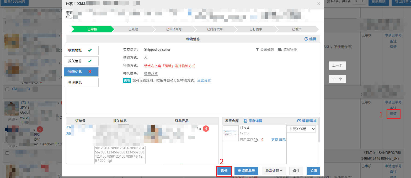 【2】TikTok墨西哥跨境站点订单,若带有需拆单的标识,会显示拆分要求,需要拆分订单,否则申请单号会失败