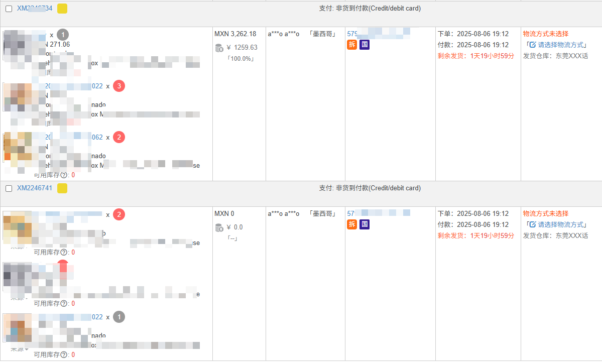 【5】TikTok 墨西哥订单,订单标识【需拆分】支持高级搜索、导出、订单规则