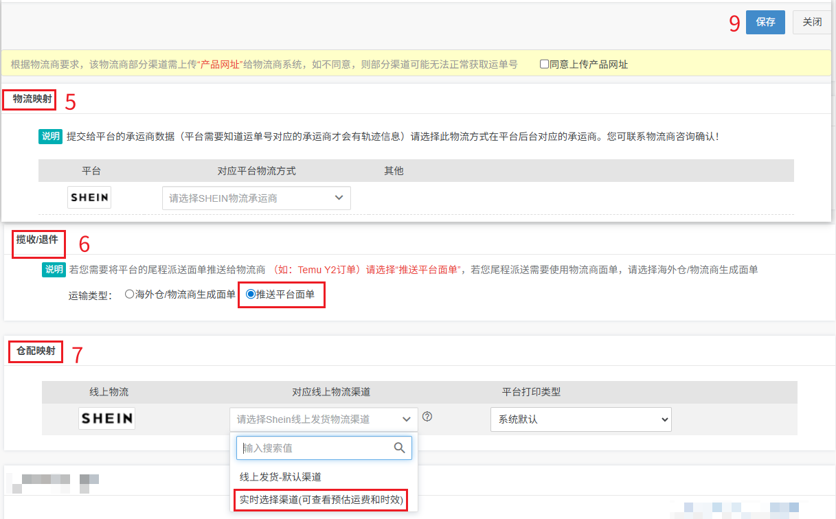 ③ 仓配映射: 选择实时选择渠道(可查看预估运费和时效)