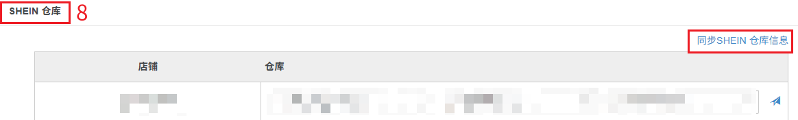 ④ SHEIN仓库:同步SHEIN仓库下拉选择仓库即可