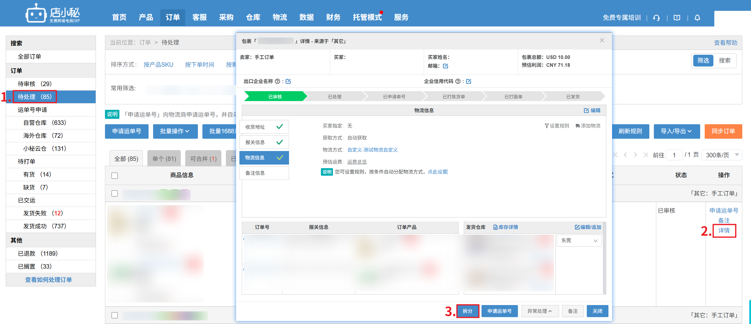 【3】在店铺后台拆分的订单,无法在到小秘页面进行拆分,只能到店铺后台处理订单