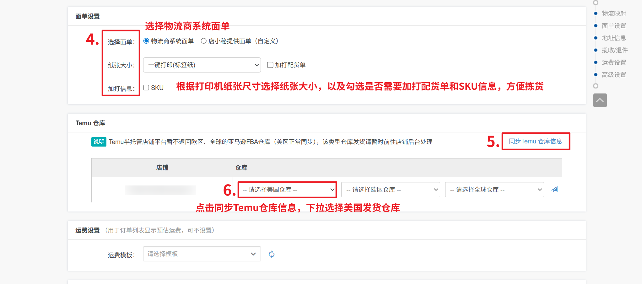 第二步:【完善物流设置信息—保存】