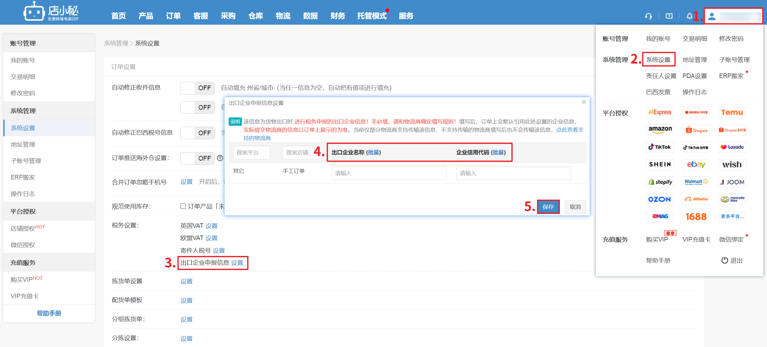 注意:系统设置填写了出口企业申报信息,然后又在订单里更改了出口企业信息,最终提交给物流商的是在订单的编辑更改后的信息