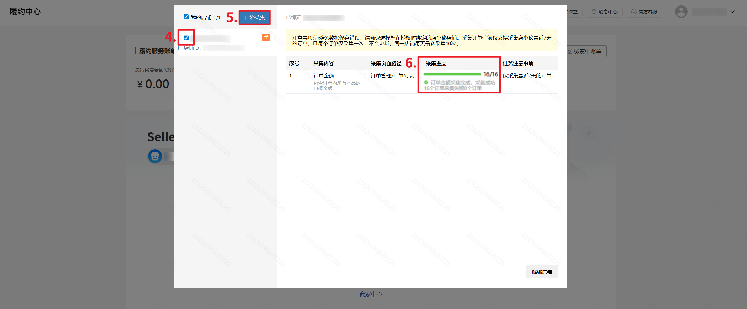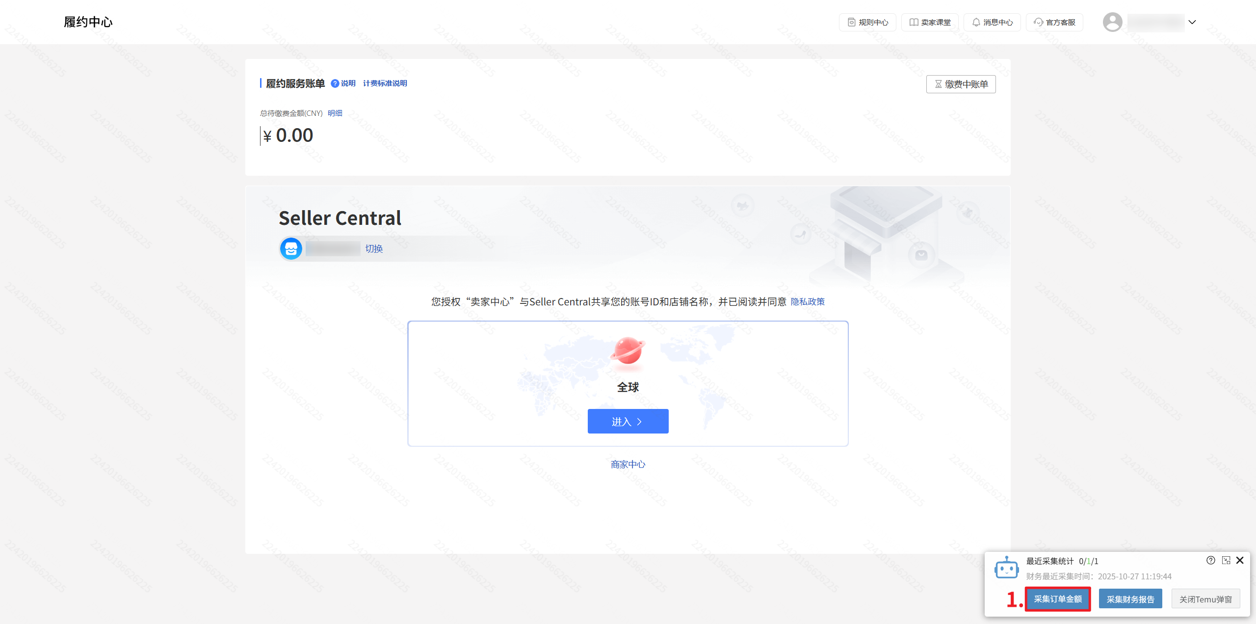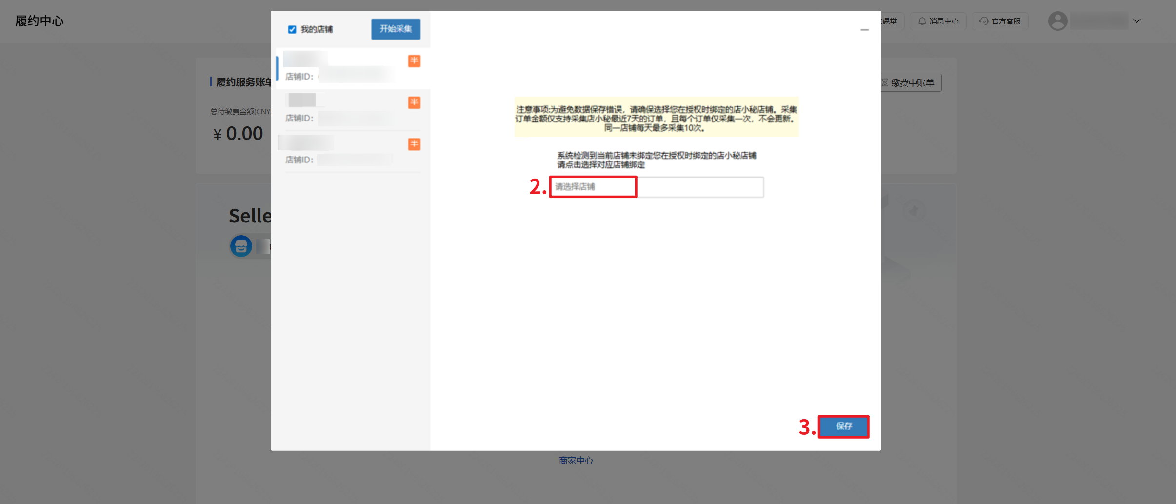 【登录店小秘主账号—进入Temu店铺后台任意页面—弹窗点击采集订单金额—绑定店铺—勾选店铺—开始采集】