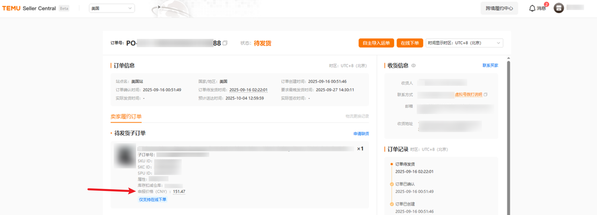 【7】采集的金额是Temu半托管后台订单的所有商品详情里的申报金额进行汇总后的金额