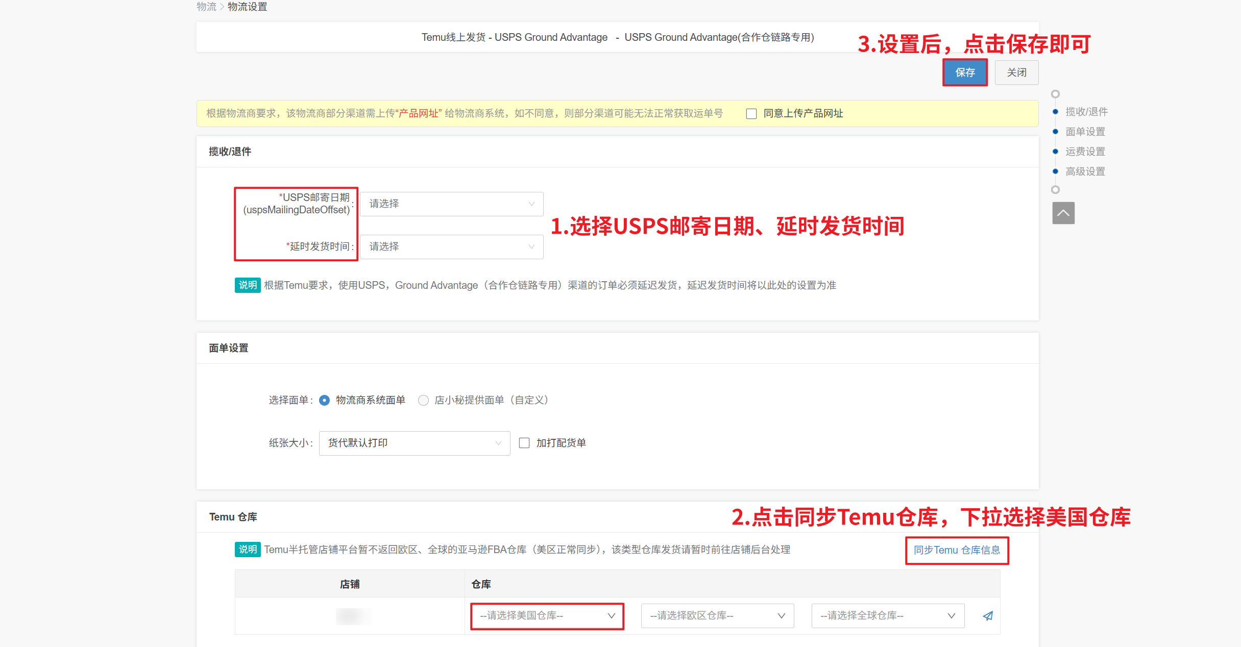 说明:Temu要求半托管美国订单(含Y2订单),如果使用USPS Ground Advantage渠道,需要通过合作对接仓模式,
