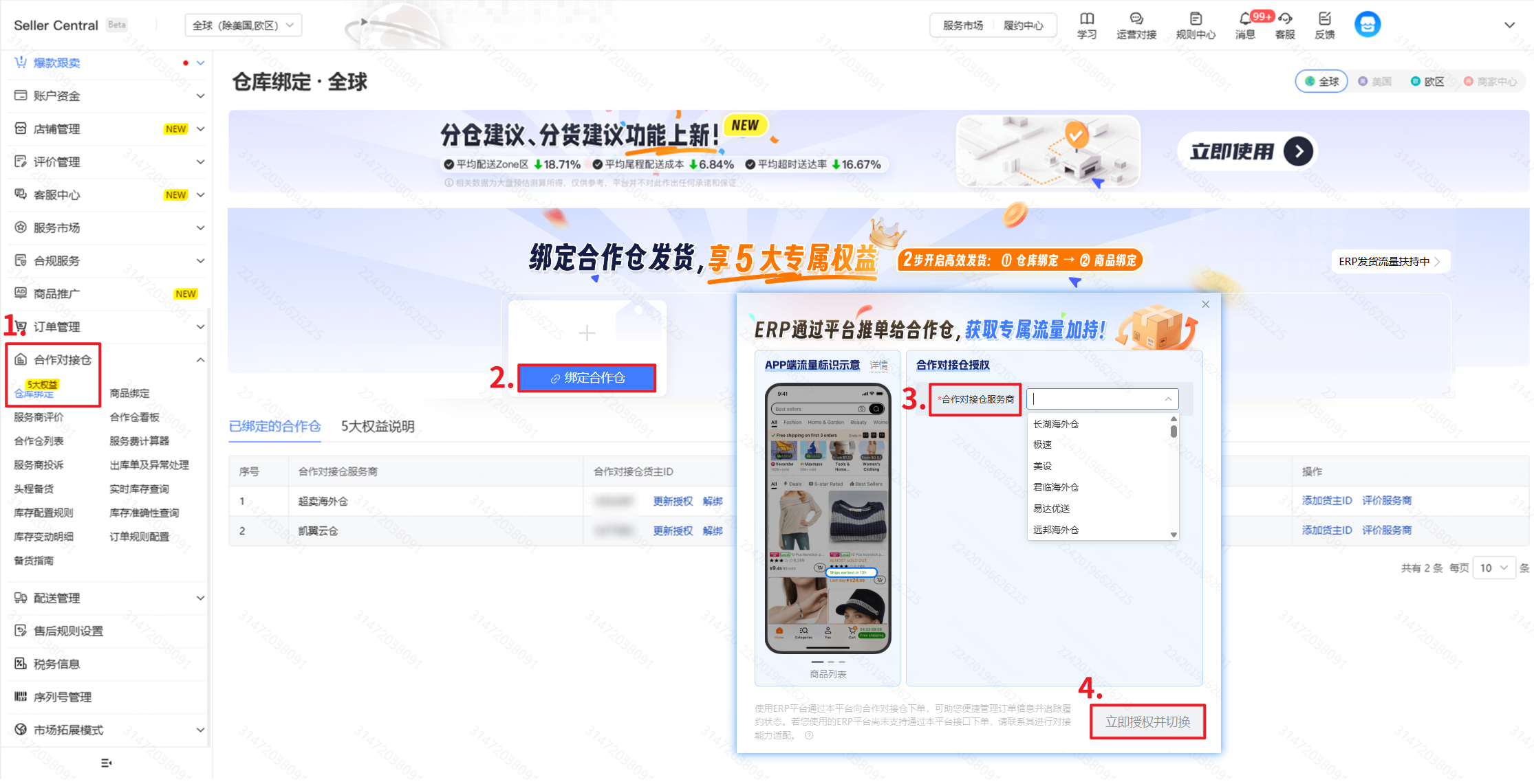 第一步:登录Temu后台完成合作仓绑定、商品绑定,绑定成功后,即可通过小秘处理订单,申请单号