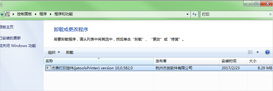 【控制面板】——【程序】——【程序和功能】搜索“打印”,选中,右键点击卸载,根据提示选择“是”,然后”确定“,卸载结束。