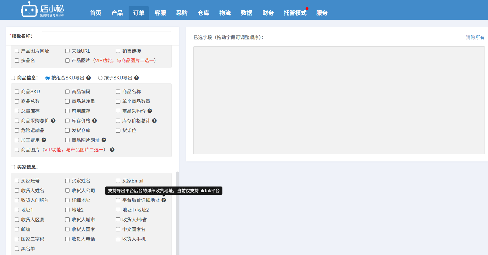 第二步:【订单任意状态—勾选订单—导出订单—选择导出勾选订单—选择导出形式—选择模板—导出】