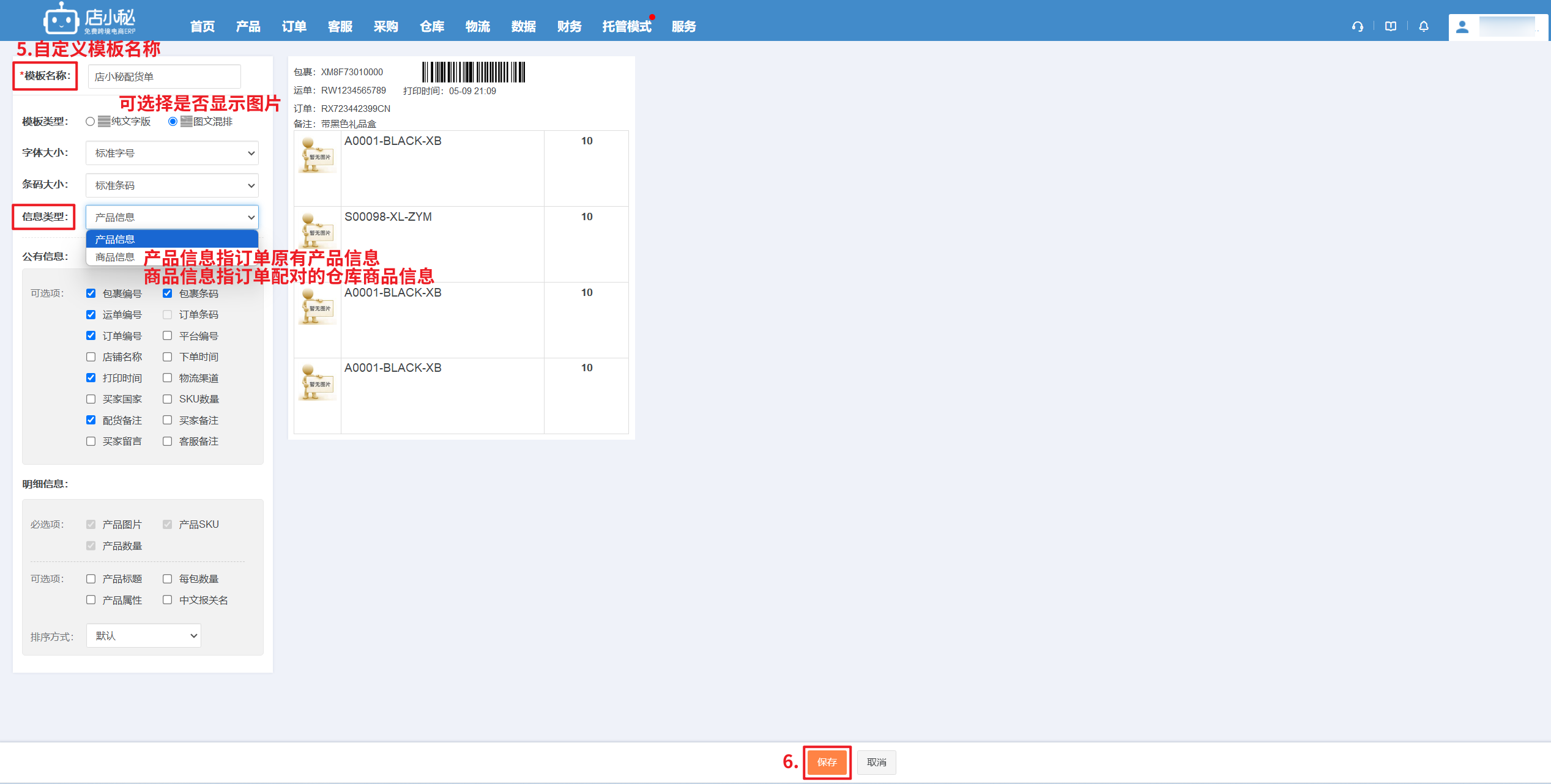 【6】物流商返回的配货单不支持自定义,加打店小秘的配货单支持自定义