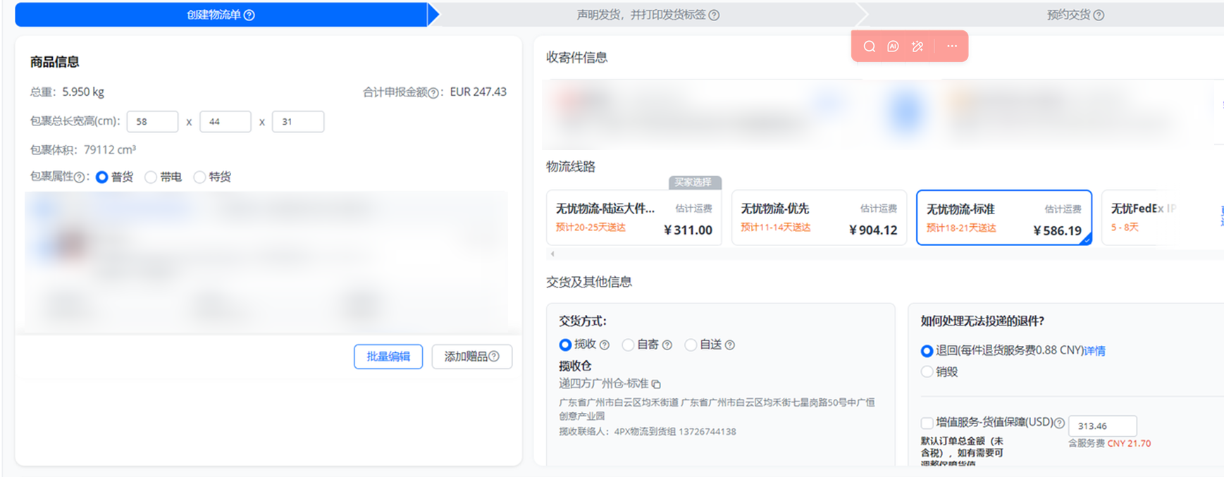 【3】无忧集运物流渠道不支持同步官方运费模板