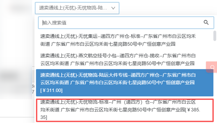 订单列表页展示如下图(点击计算器图标,仅展示引用了运费模板的物流渠道):