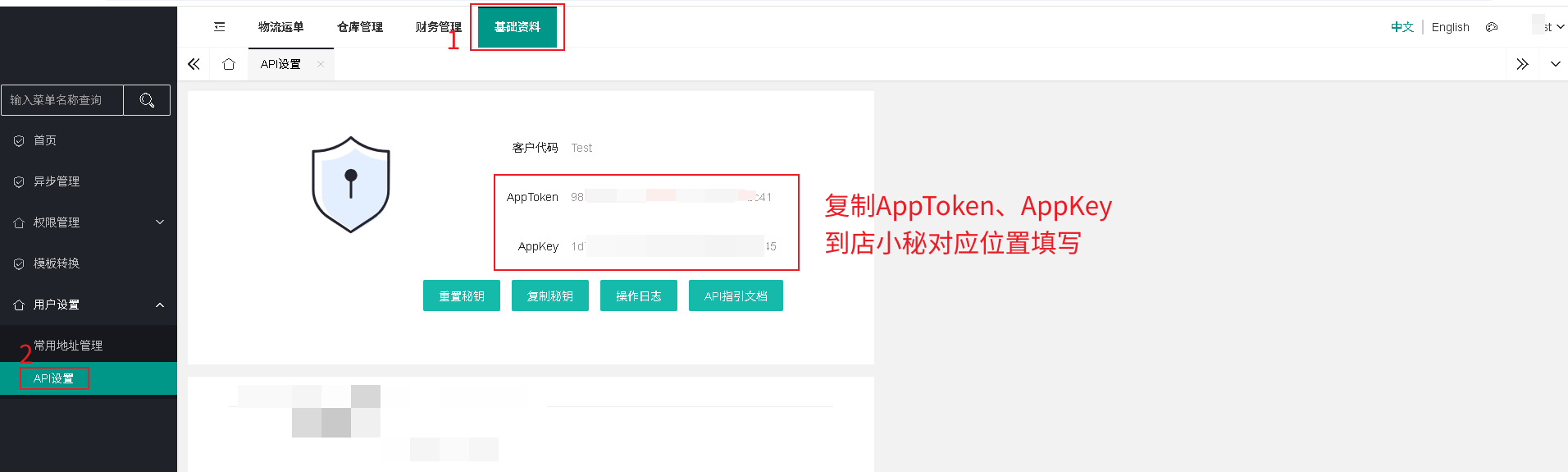 到海外仓系统后台按下图路径获取授权信息复制粘贴到小秘页面填写