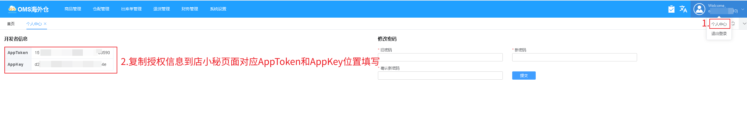 按下图路径获取授权信息复制粘贴到小秘页面填写