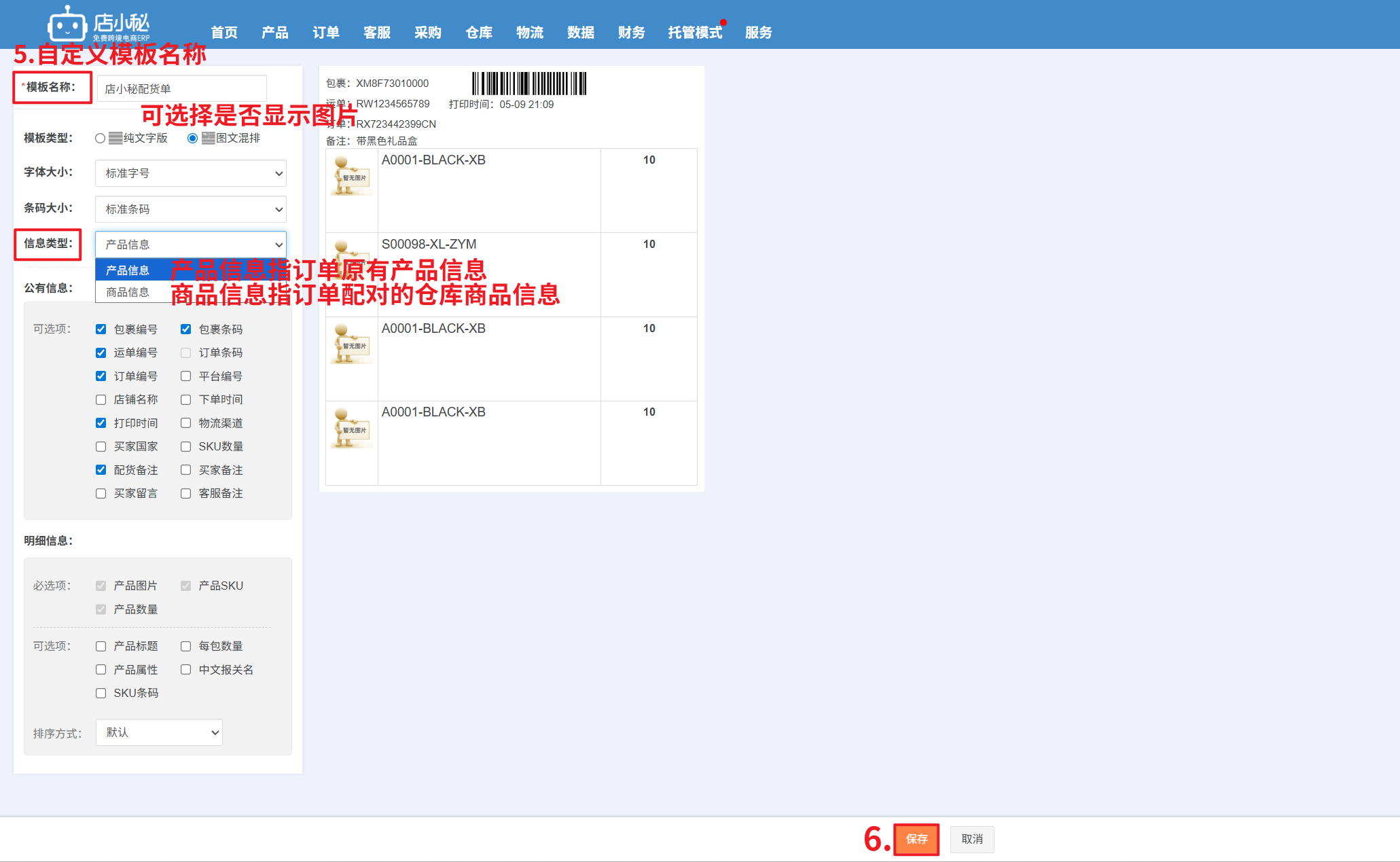 【6】物流商返回的配货单不支持自定义,加打店小秘的配货单支持自定义
