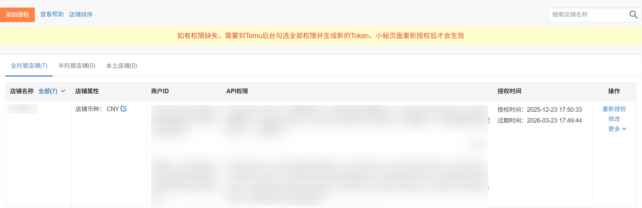 Temu生成Access Token有效期是90天,若秘钥过期需重新授权 点击查看 操作流程