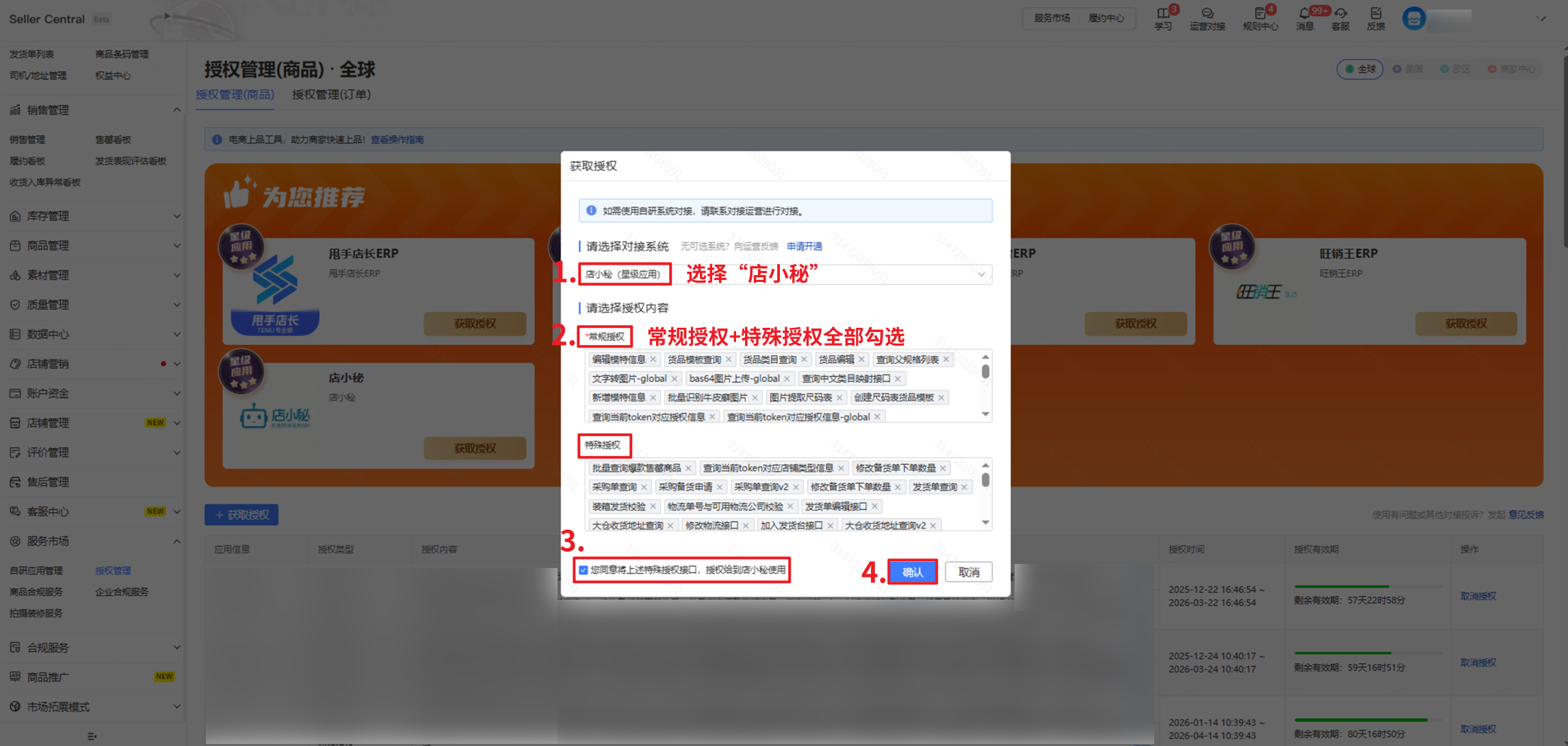 【Temu后台—Seller Central—右上角选择全球站点—服务市场—授权管理—授权管理(商品)—获取产品库存Token】