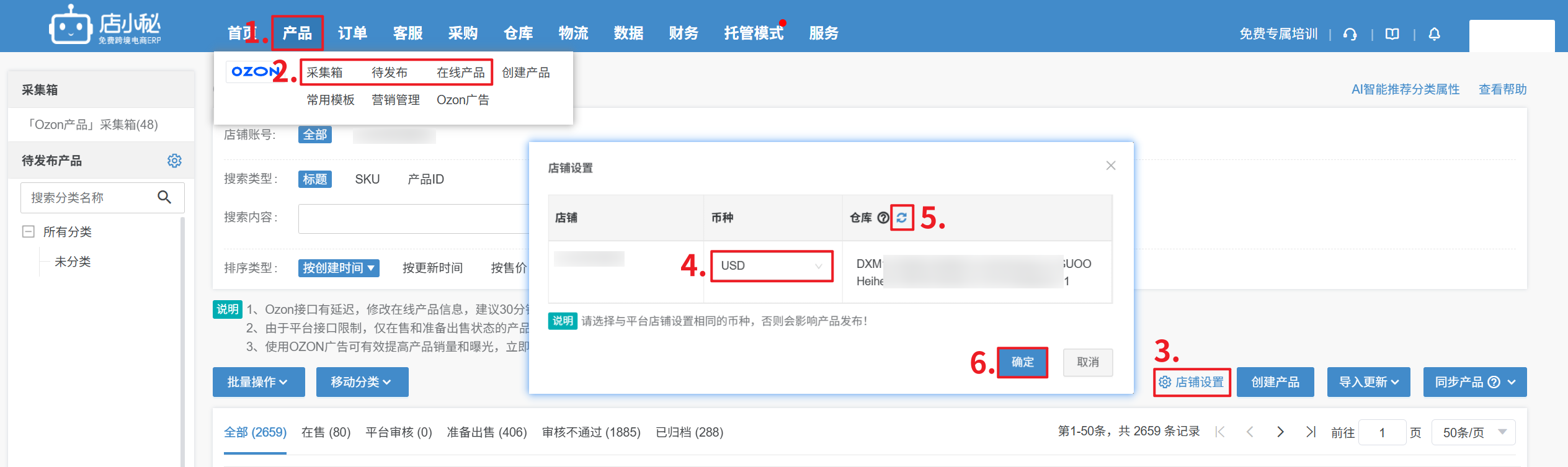 A6:Ozon 接口不支持修改FBP仓的库存,可以到店铺后台手动调整