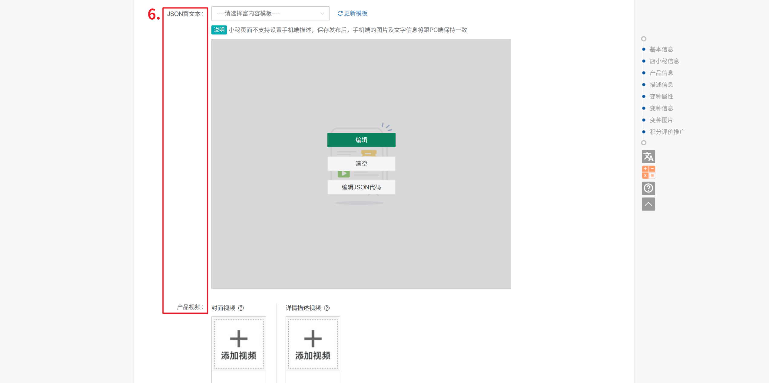 ③ JSON富文本:可手动编辑富文本或提前创建模板,创建好进行引用,具体流程可参考: JSON富文本