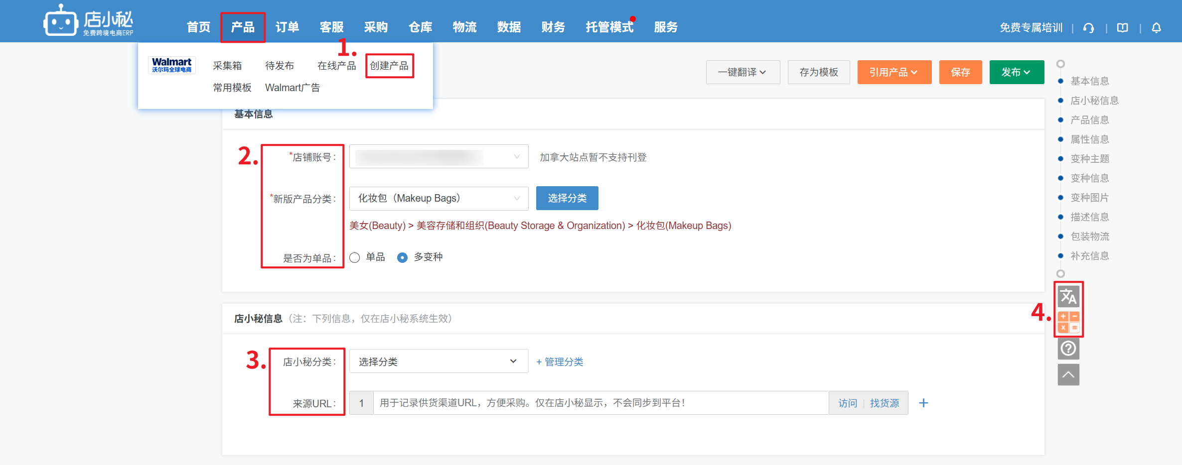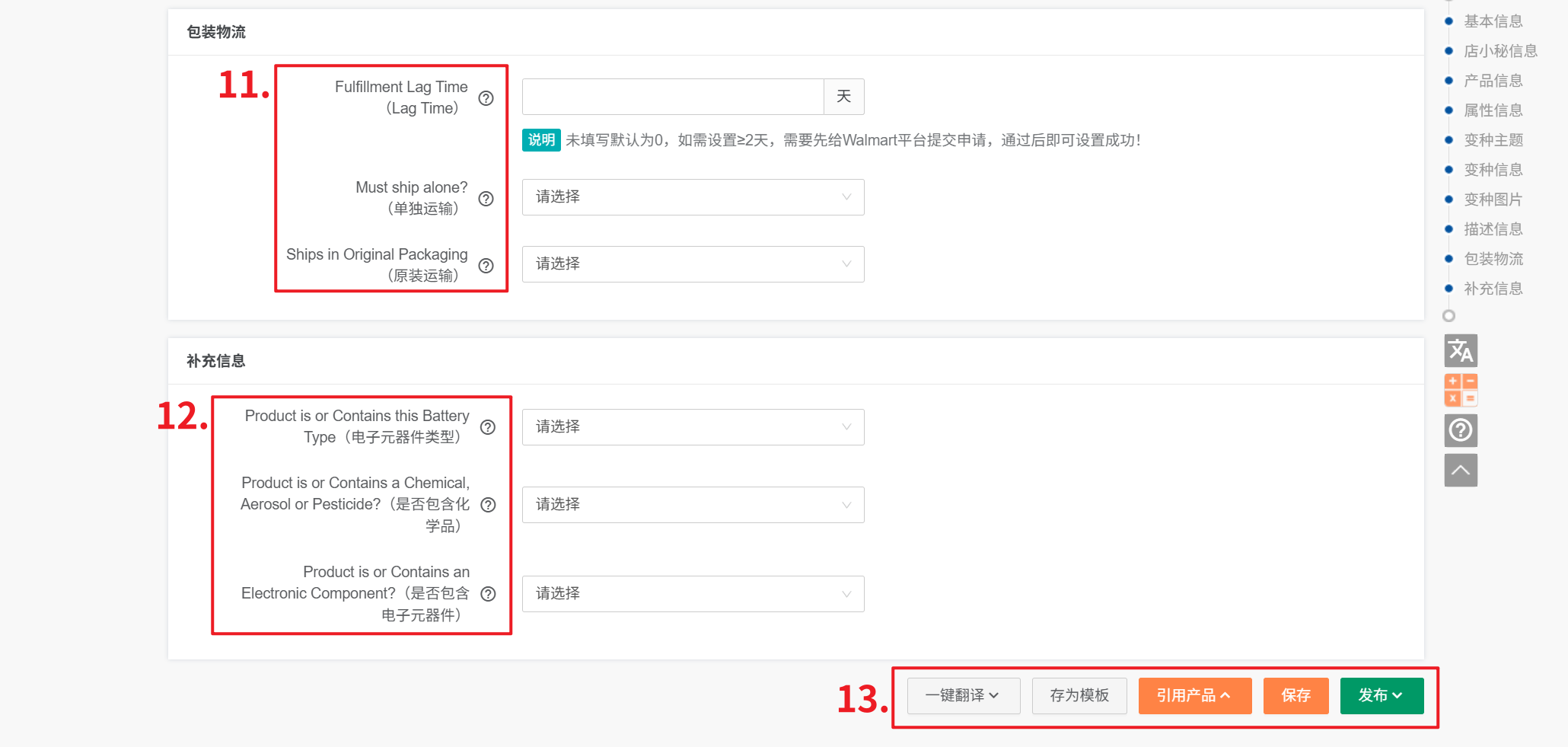 Q3:Walmart后台发布产品可以选择产品类型,小秘页面不能?