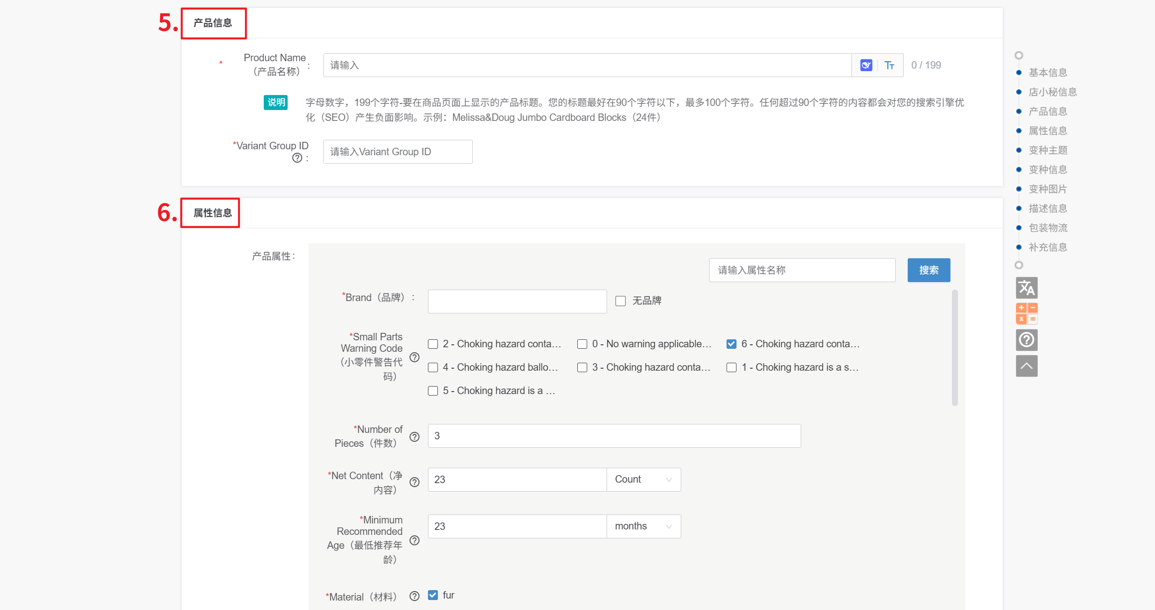 产品属性:不同的产品分类,产品属性不一样,根据实际产品选择即可,带*号必填