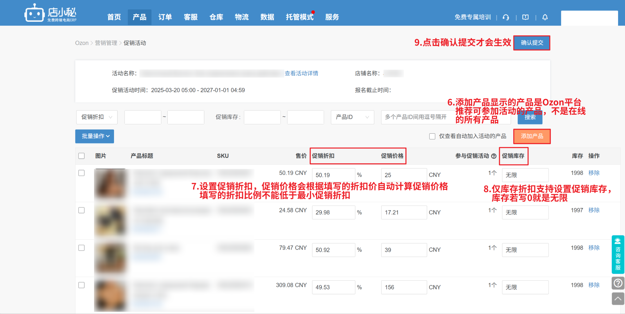 【4】Ozon热卖活动由于平台接口限制,小秘页面无法同步到活动类型,只能添加产品,无法修改活动折扣