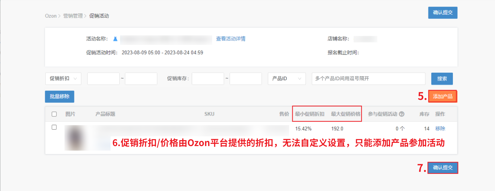 【Ozon—营销活动—促销活动—同步活动—管理活动—添加产品—确认提交】