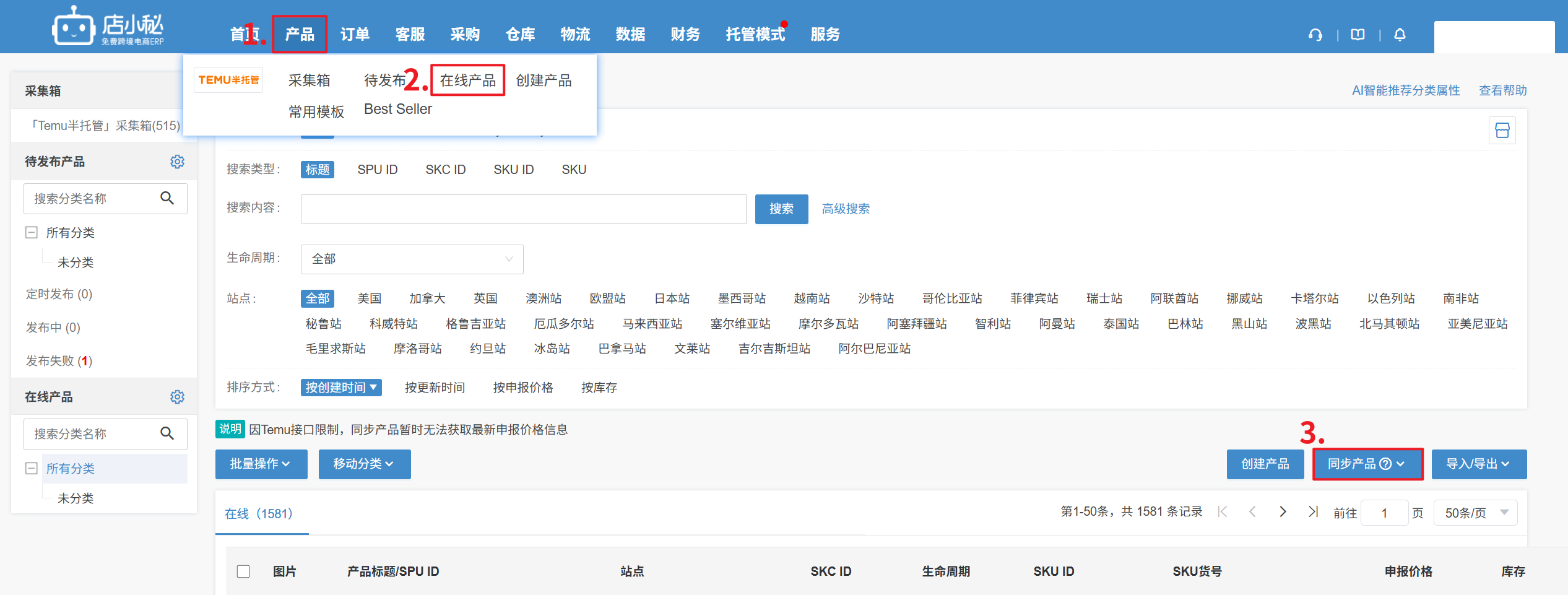 第三步:产品搬运成功后,需要等待Temu处理其余信息,请稍候再到【Temu半托管—在线产品】同步最新产品