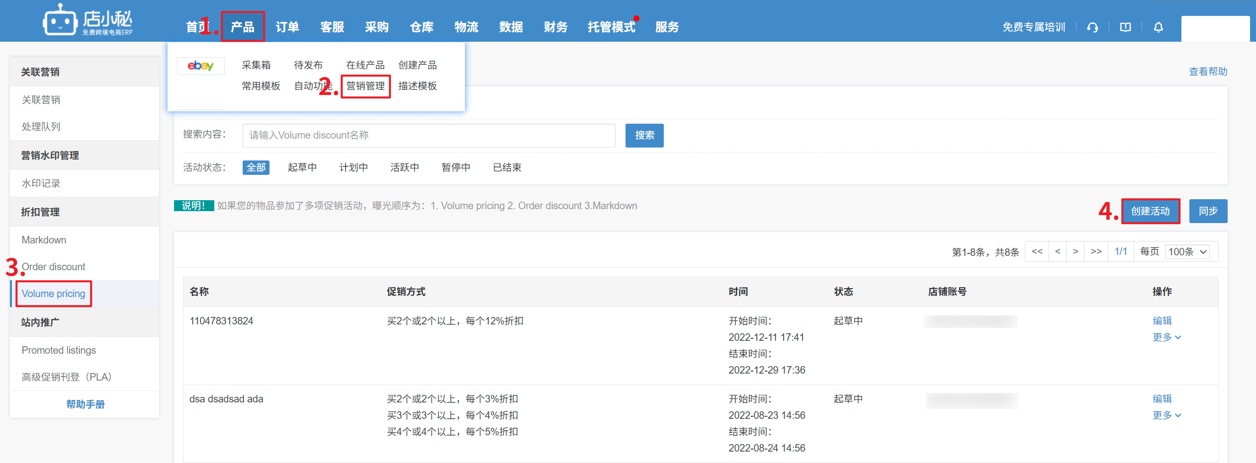 产品>eBay>折扣管理>Volume Pricing