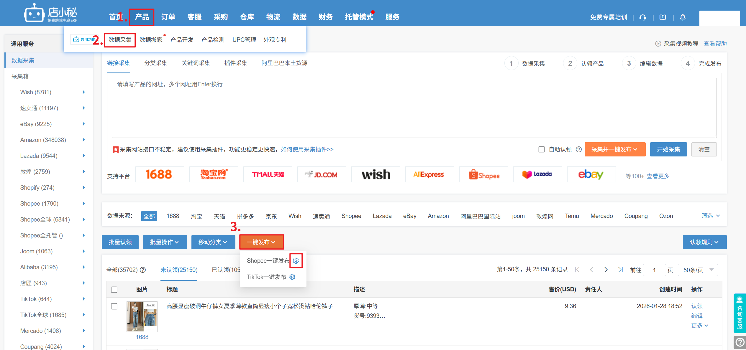 第二步:采集产品,具体流程可参考:通过插件采集产品