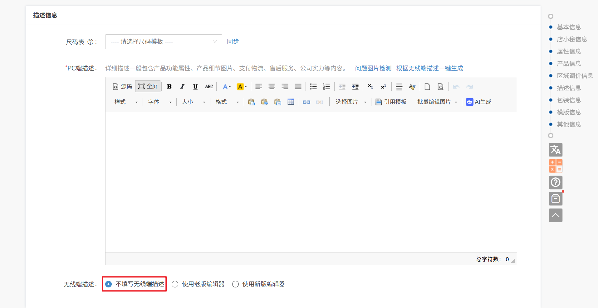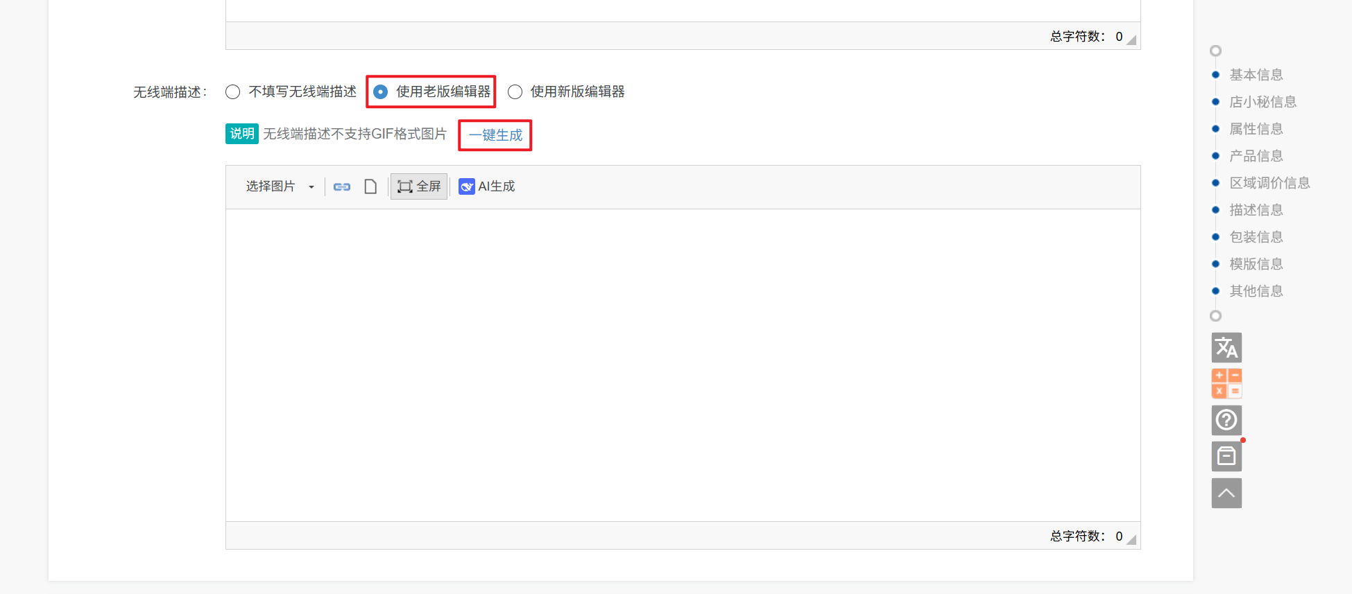 6、支持通过PC端一键生成无线端描述,同时也支持无线端一键生成PC端描述