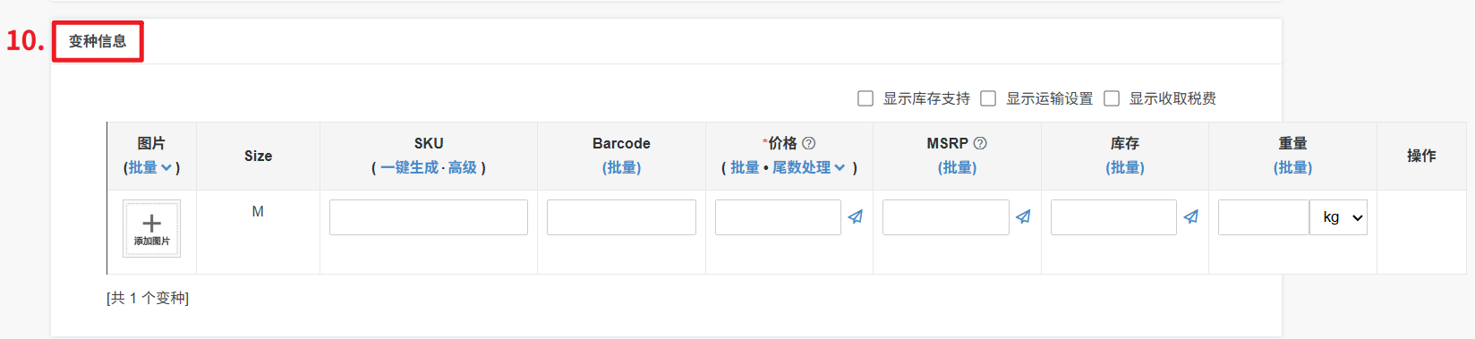 10、SKU:变种SKU,设置后方便后续识别管理产品