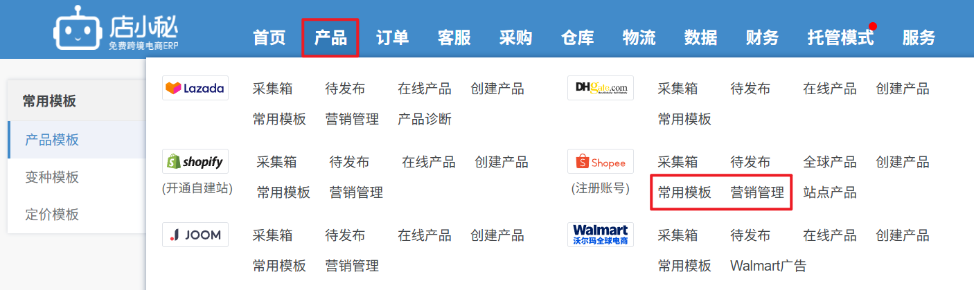 ⑦引用产品模板:将产品通用信息保存为模板,刊登时,直接选择模板,完善其他信息,发布即可