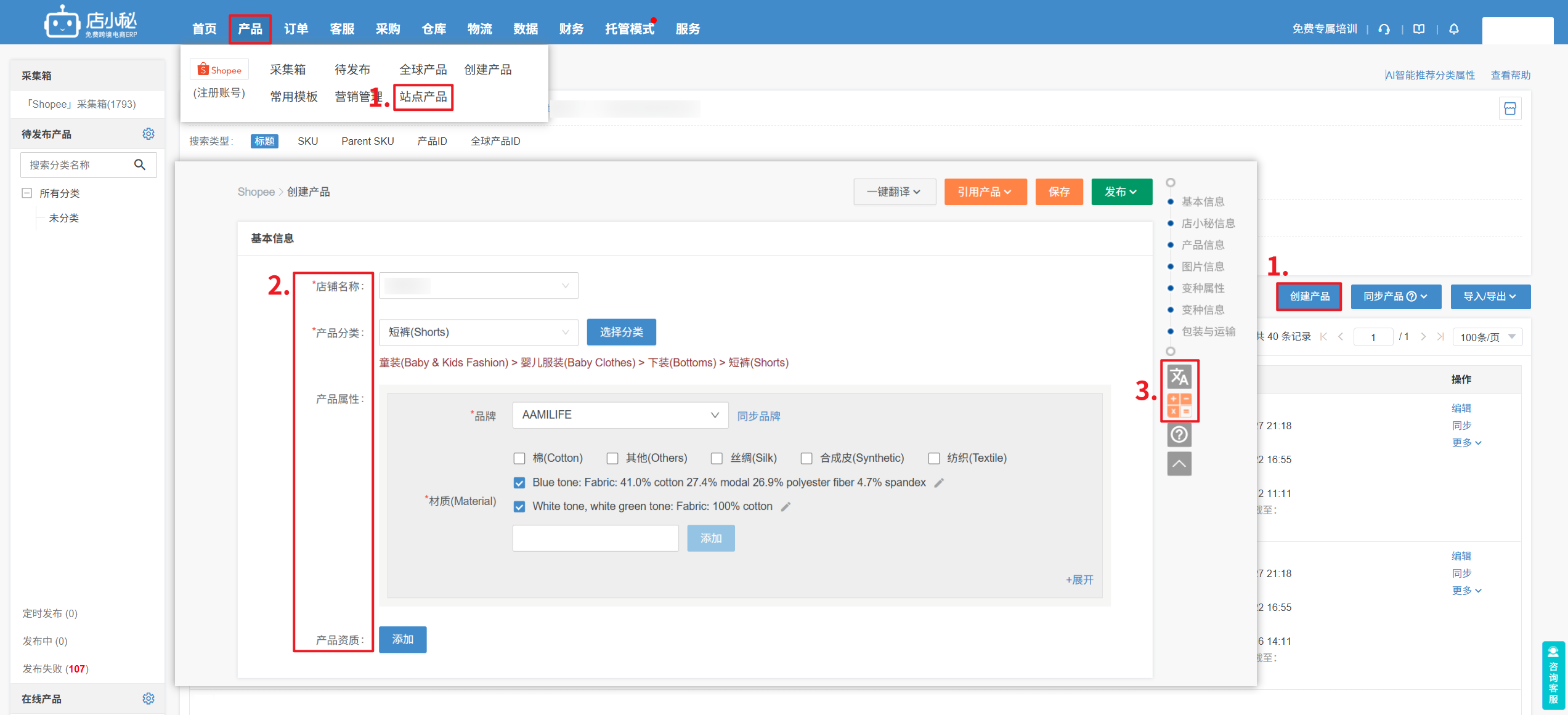 2、店铺:选择要发布产品的店铺