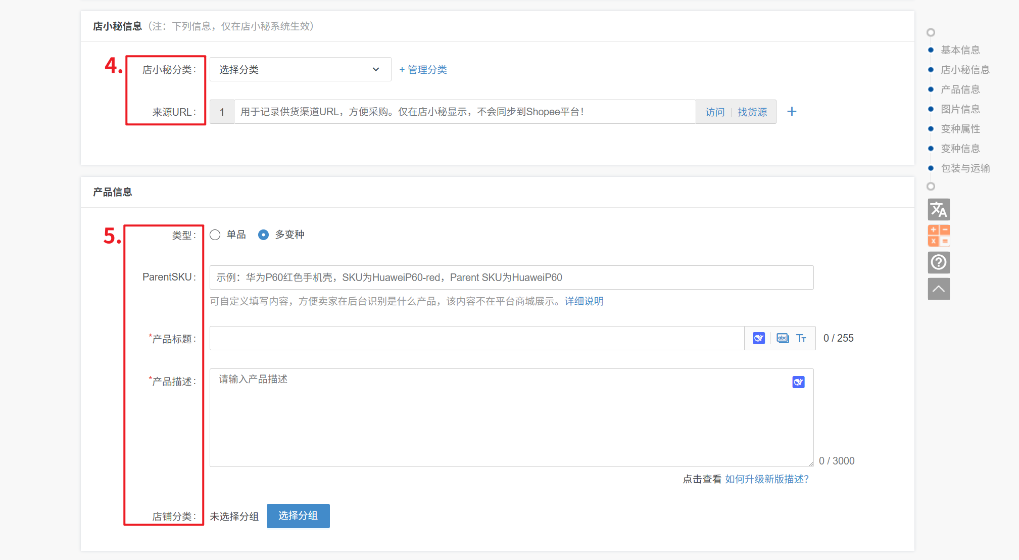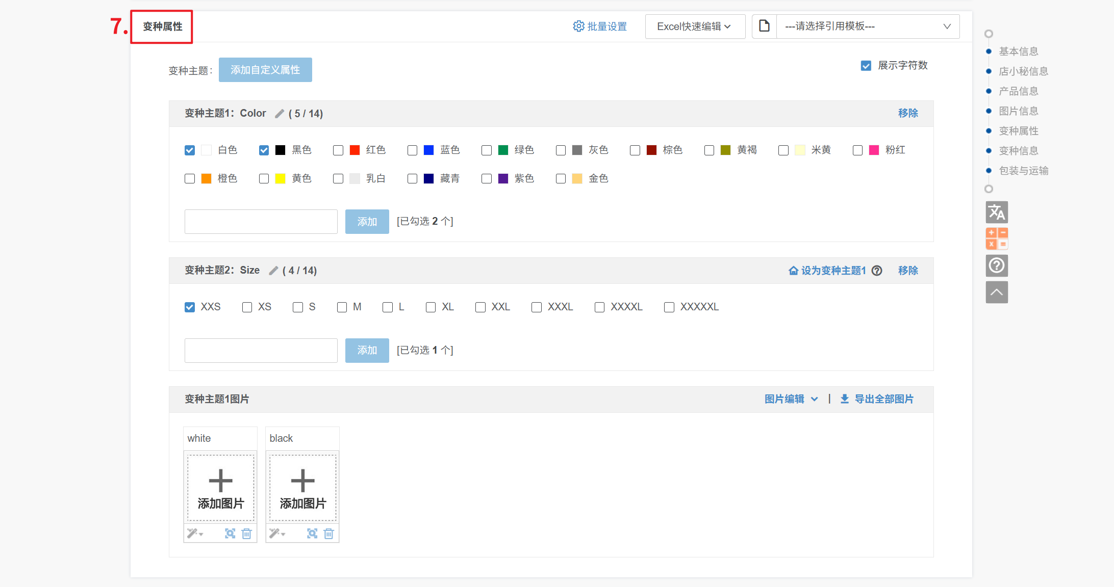 9、变种主题、变种属性:产品是以哪个信息为变种的就选择哪个即可