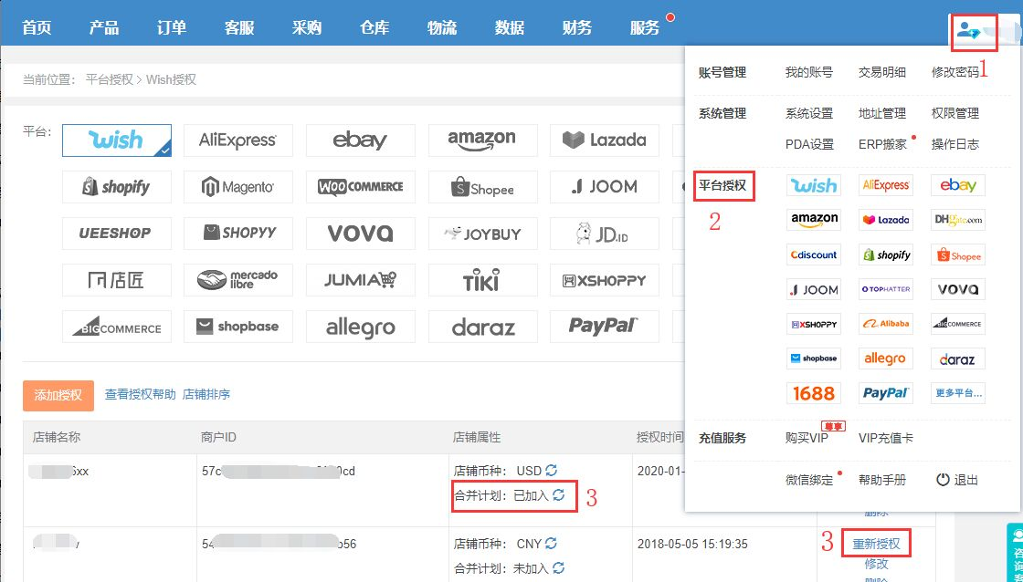 第一步:【先在Wish后台同意加入计划,小秘主账号—平台授权—点击Wish,重新授权店铺后,点同步】