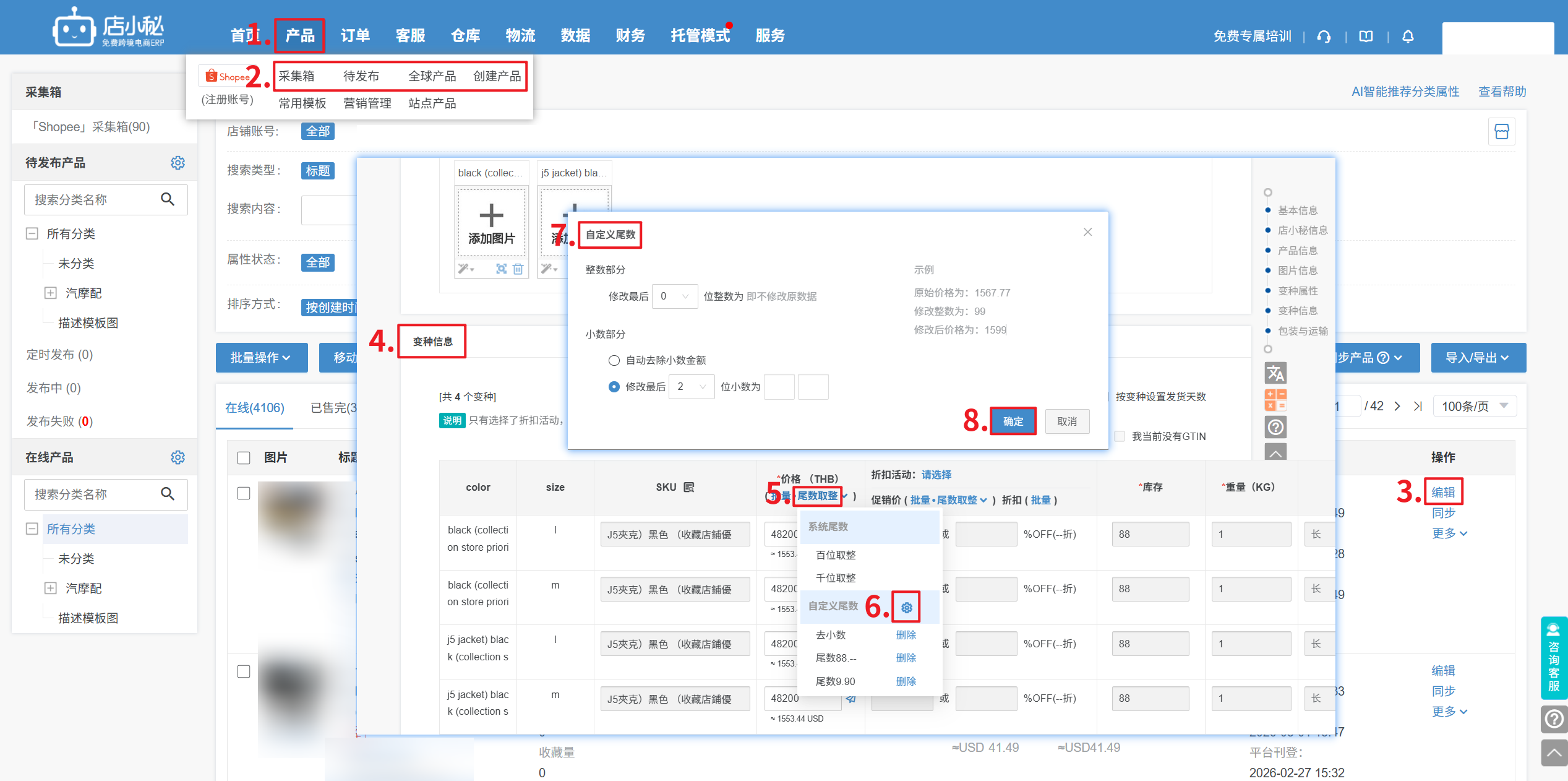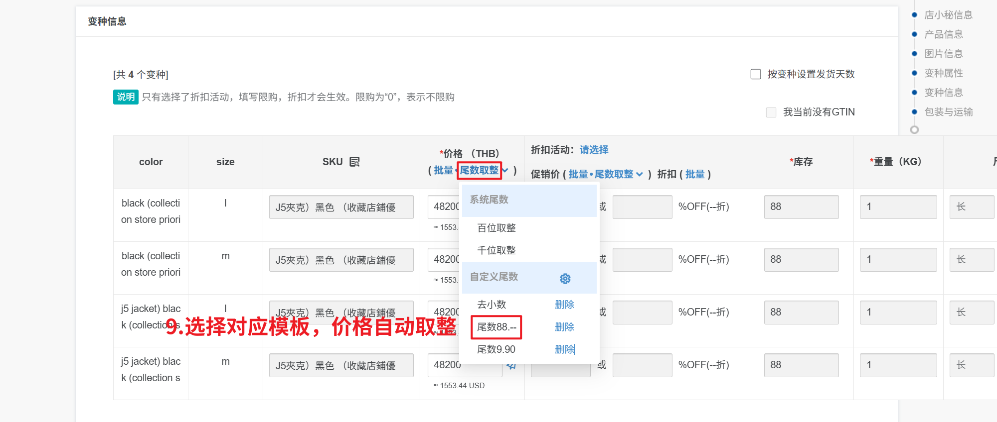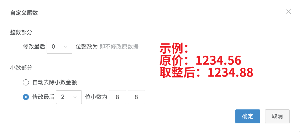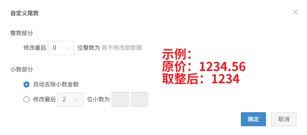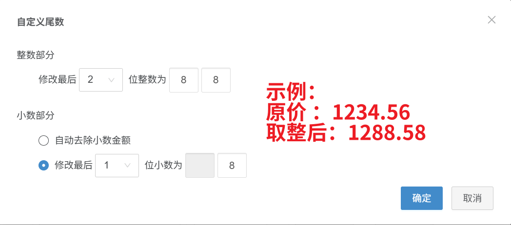 第二步:【点击尾数取整—选择对应模板,价格自动取整】