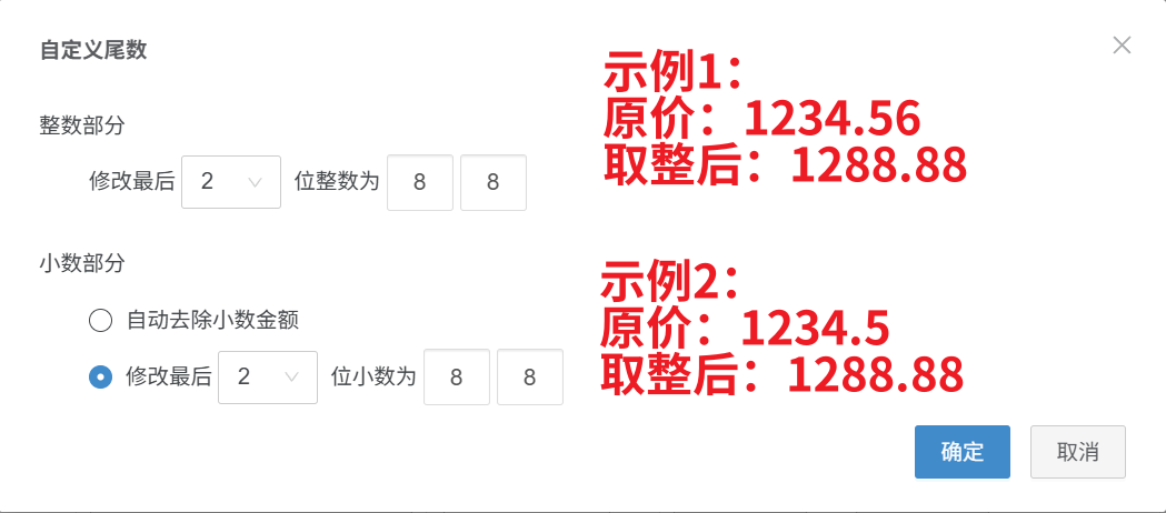 示例1:不修改整数,修改小数位最后2位为88