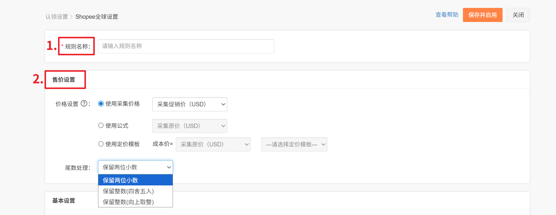 尾数处理:可针对价格的尾数处理,比如保留2位小数等