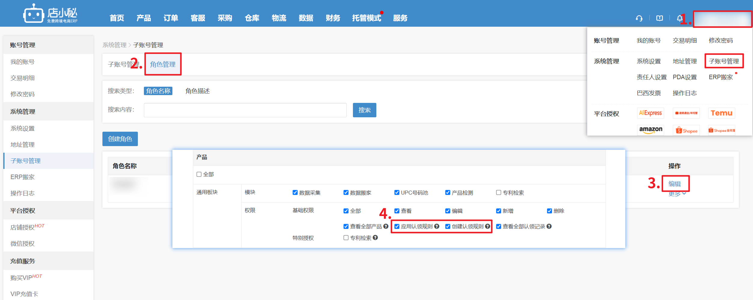 A1:【主账号登录右上角用户名—权限管理—角色管理—编辑—勾选应用认领规则和创建认领规则】才可以设置