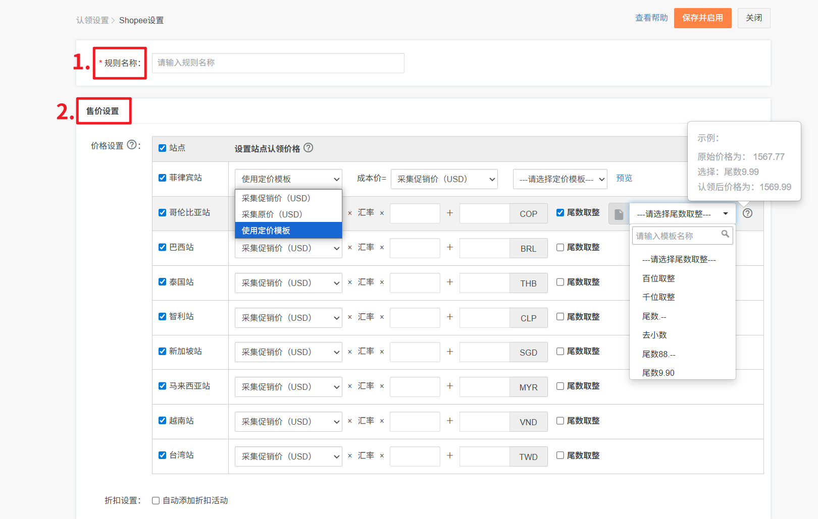 尾数处理:可针对价格的尾数处理,比如保留2位小数等
