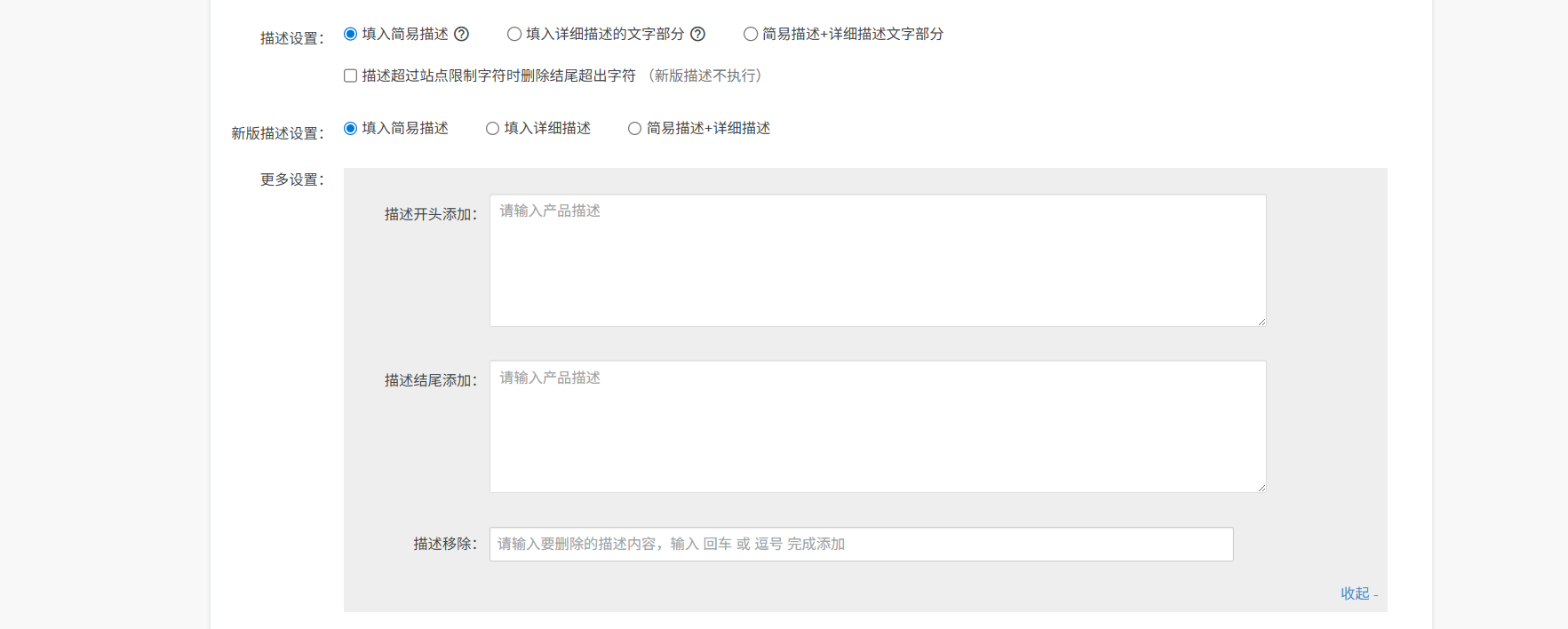 更多设置:对描述内容开头或者结尾添加固定内容或者删除描述中具体词汇