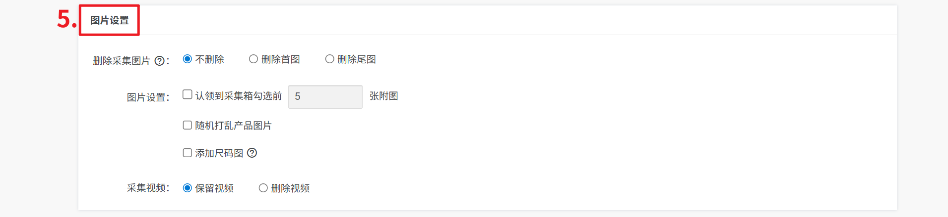 5、图片设置:对采集来的图片可删除或只需要勾选前几张图片认领到店铺、打乱图片顺序、添加尺码图