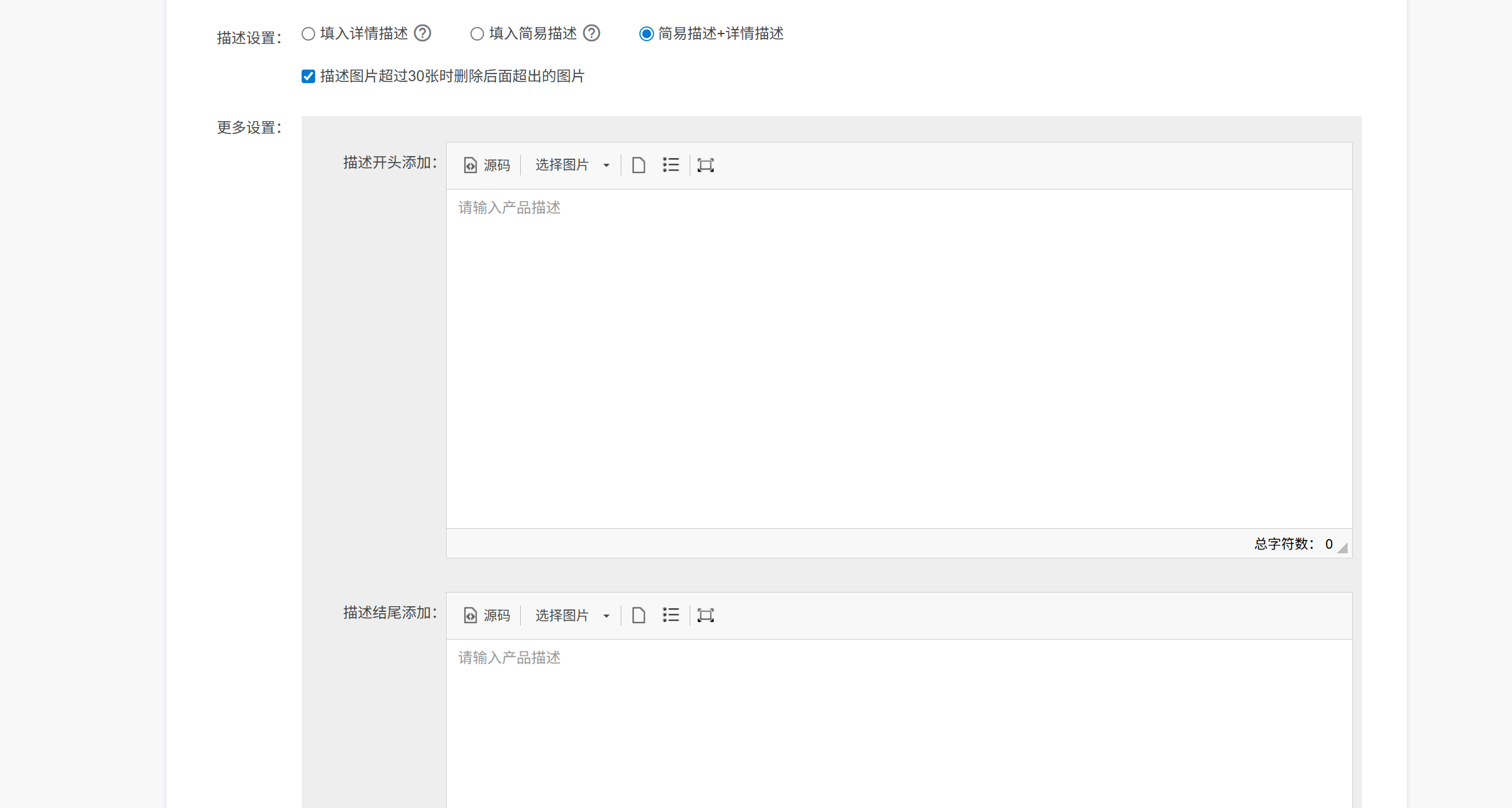 ③ 可勾选当描述图超过30张时,删除超出的图片