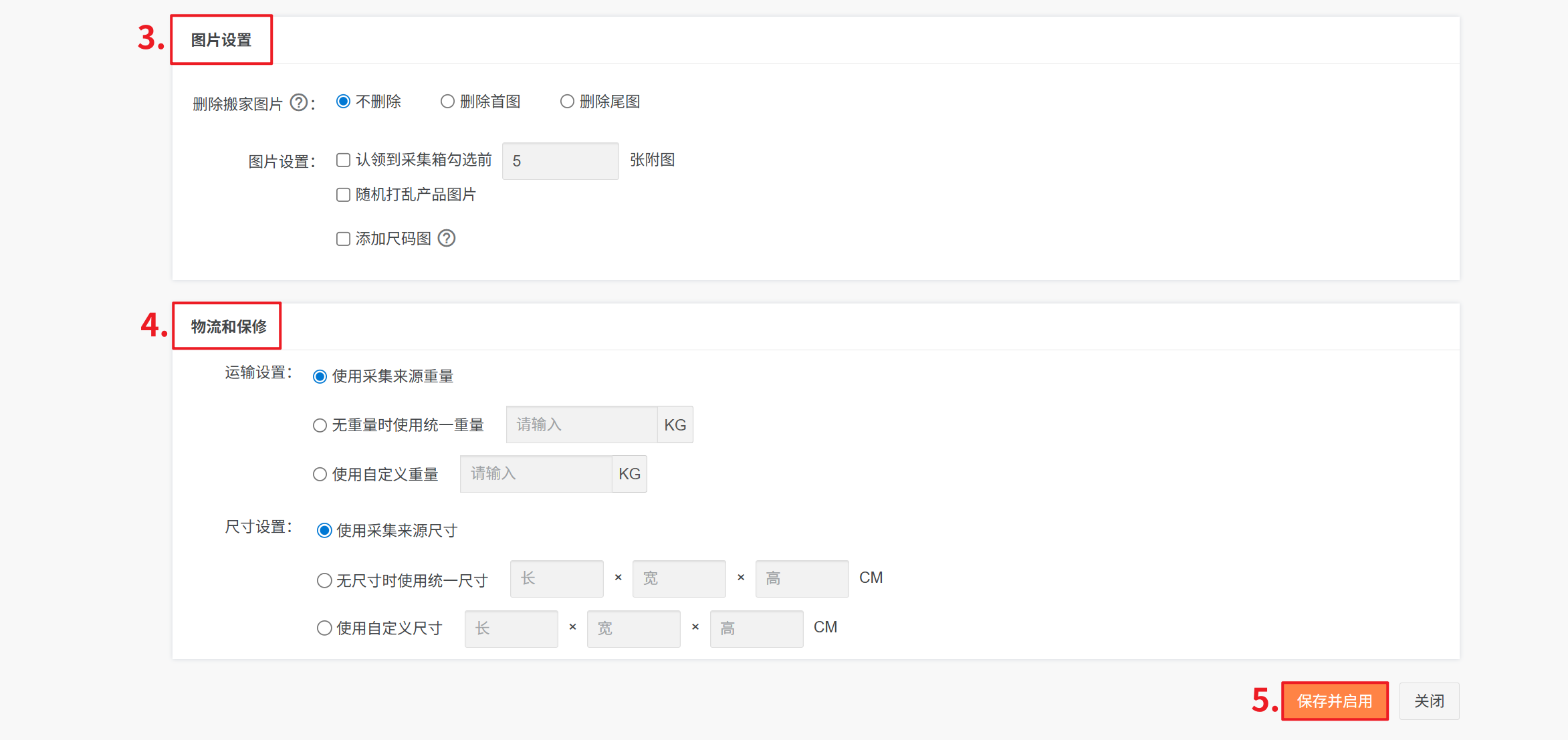 库存设置:① 可设置使用采集来源库存