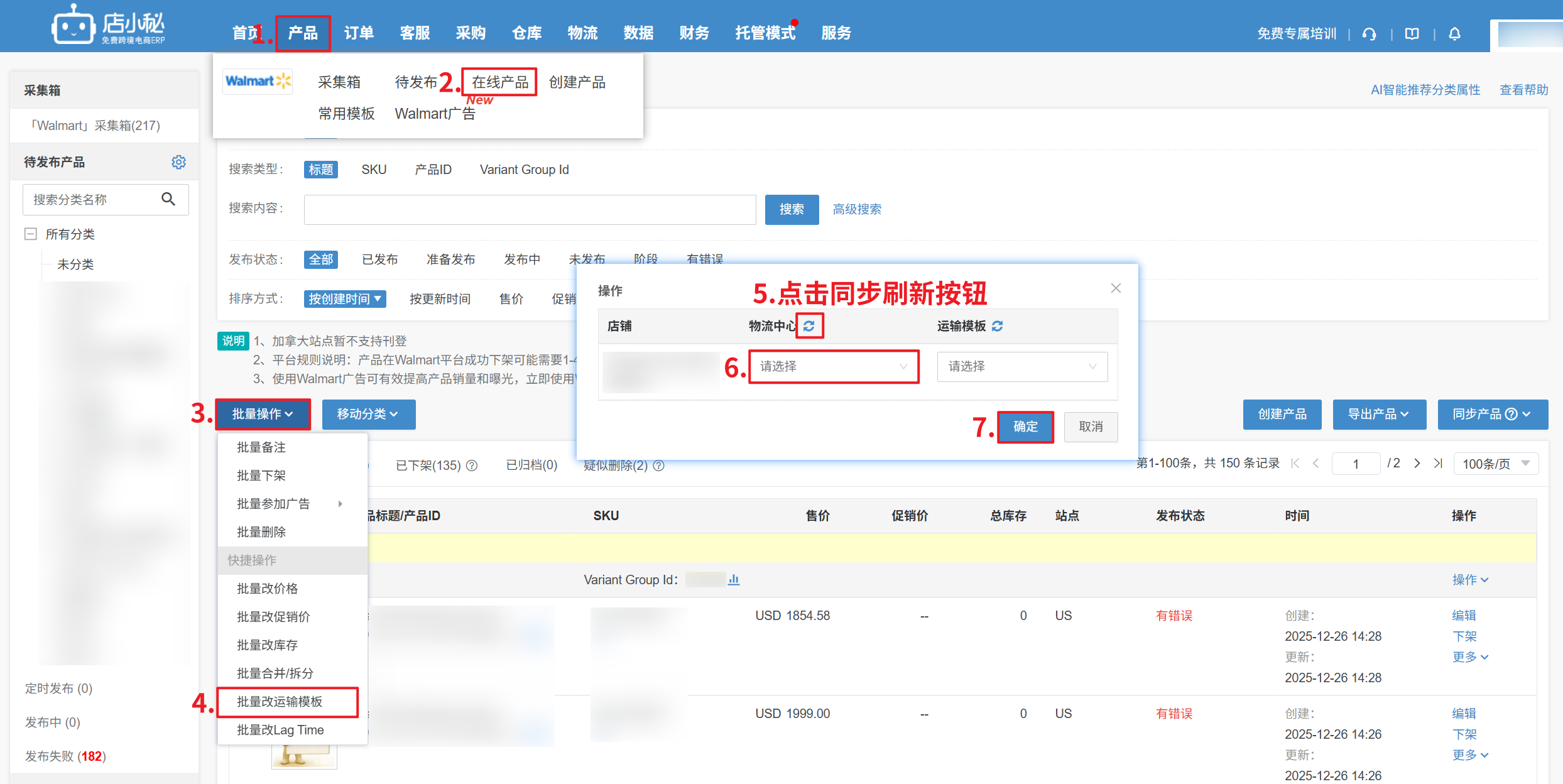 Q4:沃尔玛在线产品已经操作产品合并,但是店铺后台分开显示多条?
