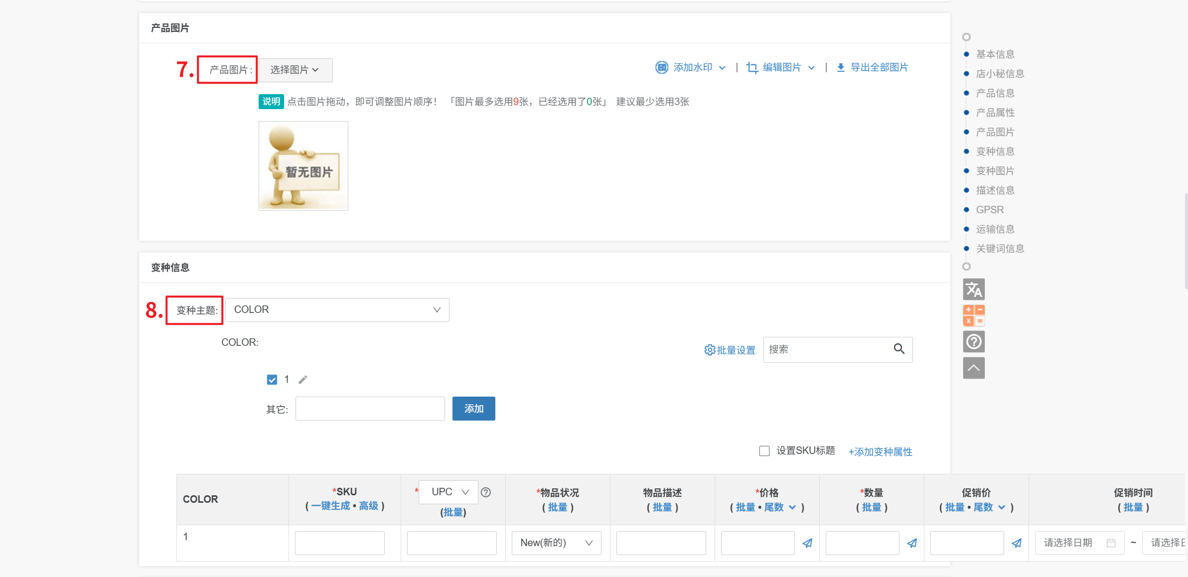注意:可点击【批量编辑】使用UPC号码池的功能自动从号码池获取UPC/EAN,具体操作查看  UPC管理