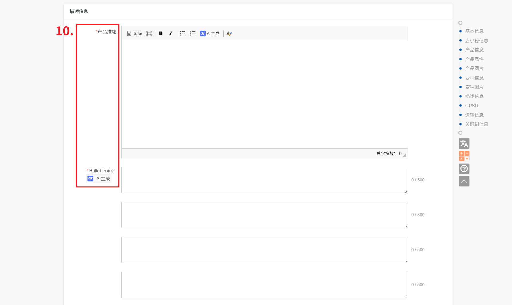 ① 产品描述:由于Amazon接口限制,小秘页面发布Amazon产品,产品描述仅支持添加文本内容