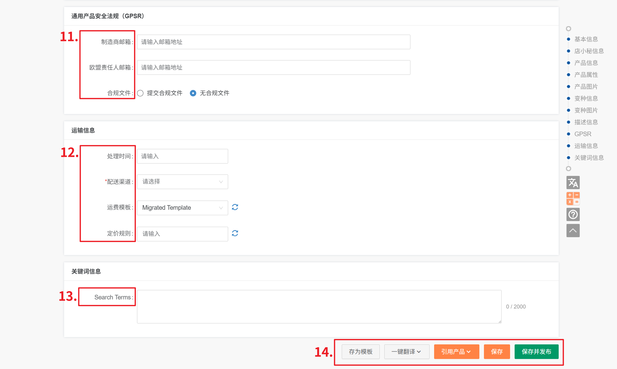 存为模板:将当前编辑的信息另存为模板,方便下次创建产品可直接引用,具体流程可参考:产品模板